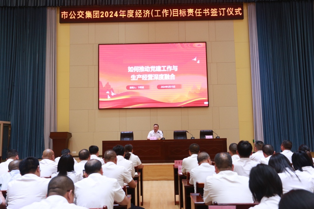 大會(huì)以2024年度經(jīng)濟(jì)(工作)目標(biāo)責(zé)任書的簽訂拉開(kāi)序幕。隨后集團(tuán)黨委書記、董事長(zhǎng)卞軍虎以《黨建融入生產(chǎn)經(jīng)營(yíng)》為題,為集團(tuán)黨員干部進(jìn)行授課。