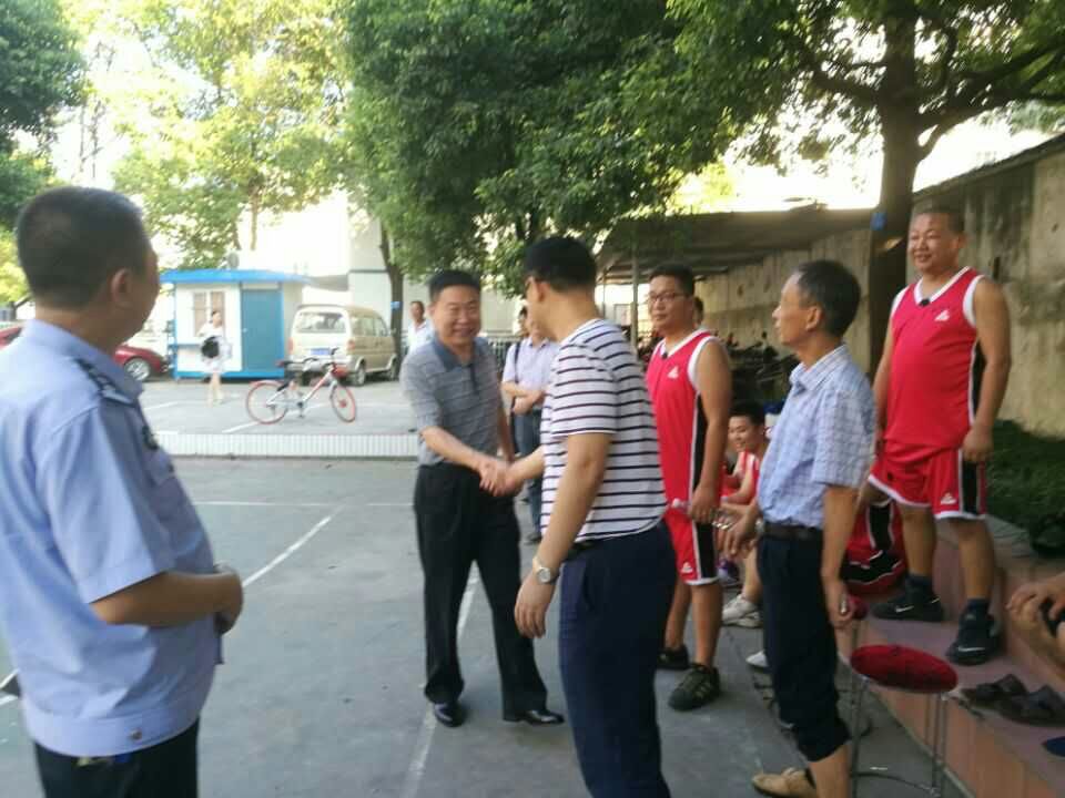 上圖為:集團公司籃球隊與掇刀派出所籃球隊的隊員們開賽前的準備