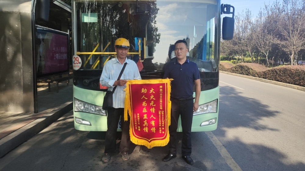 9月4日,市民賀先生拿著一副寫有“拾金不昧 品德高尚”的錦旗交給市公交集團二公司相關(guān)負責人手上,希望轉(zhuǎn)交給3路李學鋒師傅,言語間滿是感激。
